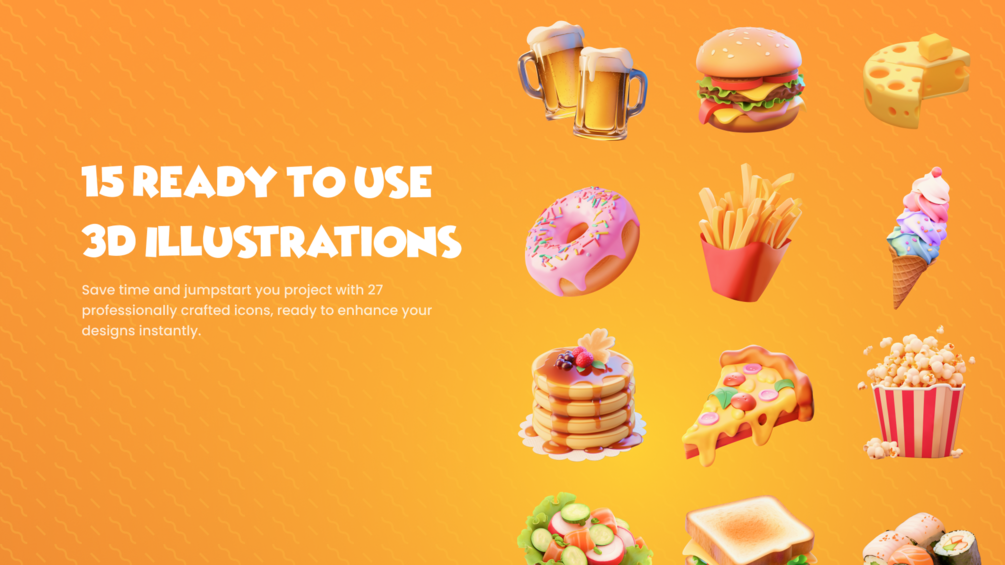 So why wait? Take your designs to the next level with this amazing pack of 3D food illustrations today!